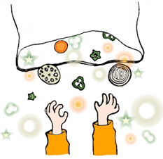 中身の見えない布袋などに、いろいろな野菜を入れておきます。手探りで中身を探り、手に触れたものをよーく触って、当てっこをしてみましょう。その時、野菜の香りなどもかいでみるといいですね。